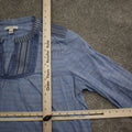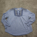 J. Crew Women Embroidered Bib Peasant Top Stretch Long Sleeve Striped Blue Sz 12