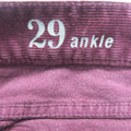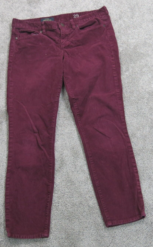 J Crew Women's Slim Fit Skinny Leg Corduroy Ankle Pants Low Rise Maroon Size 29