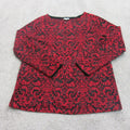 J. Jill Women Pullover Knitted Sweater Floral Long Sleeve Crew Neck Black Red M