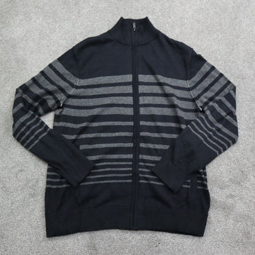 Kenneth Cole Reaction Mens Full Zip Sweater100% Cotton Stripe Black Gray Size XL