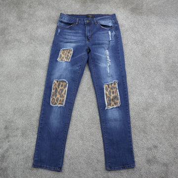 L&B Womens Distressed Jeans Slim Fit Denim High Rise Light Blue Size W32