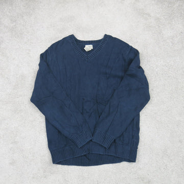 L.L. Bean Women Pullover Sweater Knitted 100% Cotton Long Sleeves Blue Size XL