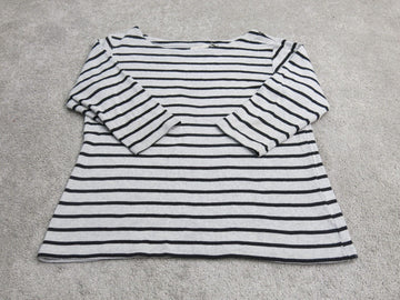 L.L Bean Womens Pullover Sweater Crew Neck Striped White Black Size Medium