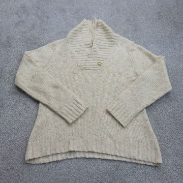 L.L Bean Womens Pullover Sweater Knitted Shawl Neck Long Sleeve Ivory Beige SZ M