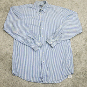 Lands End Mens Button Down Shirt 100% Cotton Long Sleeves Pinstripe Sky Blue M