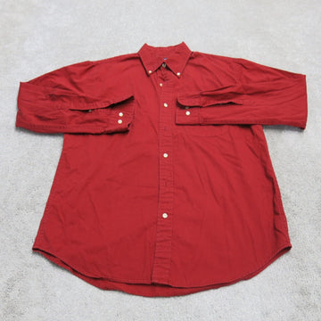 Lands End Mens Button Down Shirt Long Sleeves Chest Pocket Red Size Medium