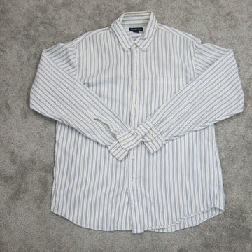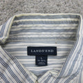 Lands End Mens Casual Button Down Shirt Top Long Sleeves White Blue Size Large