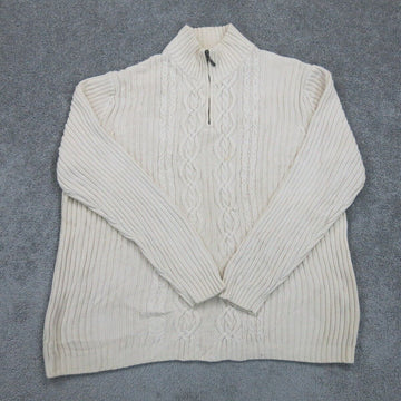 Lands End Mens Pullover 14 Zip Sweater Knitted Long Sleeve Ivory Size Large