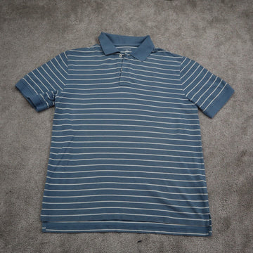 Lands End Mens Stripe Polo Shirt 100% Cotton Short Sleeves Teal Blue Size Medium