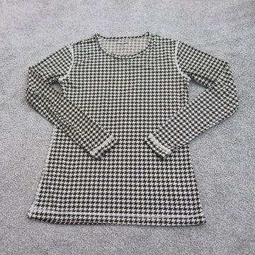 Lands End Womens Casual Houndstooth T Shirt Long Sleeves Cream Black Size XS