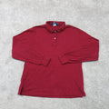 Lands End Womens Polo Shirt 100% Cotton Long Sleeves Front Button Maroon Size S