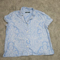 Lauren Ralph Lauren Womens Button Up Blouse Cap Sleeves Paisley Print Blue SZ 2X