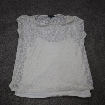 Lauren Ralph Lauren Womens Lace Tank Top Short Cap Sleeve Ivory Cream Size PL