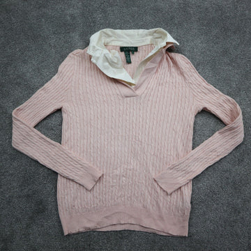 Lauren Ralph Lauren Womens Pullover Sweater Knitted Long Sleeves Pink Size Large