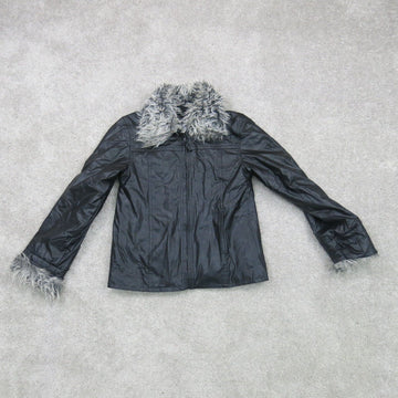 Lee Outwear Women's Faux Fur Leather Jacket Full Zip Up Long Sleeve Black Medium