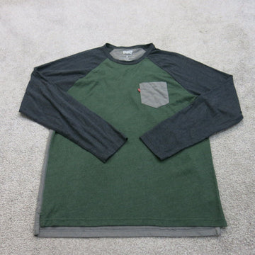 Levi Struss & Co Mens Long Sleeve Shirts Crew Neck Pocket Green Gray Size Medium