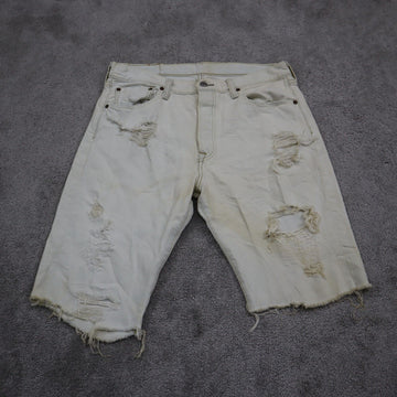 Levis 501 Mens Distressed Bermuda Shorts Cut Hem 100% Cotton Mid Rise White W33