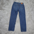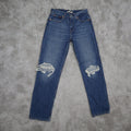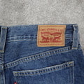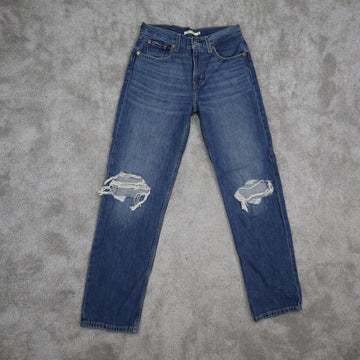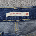 Levis Jeans Mens Blue Solid Low Pro Straight Leg Denim Distressed Logo Size 26