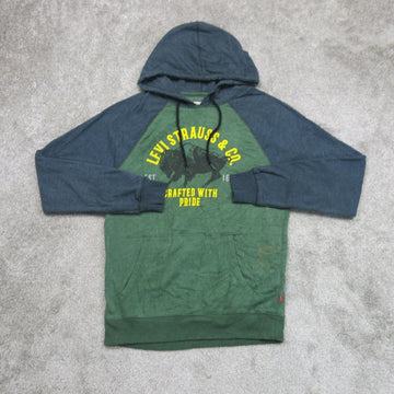 Levis Mens Hoodie Sweatshirt Long Sleeve Logo Green & Charcoal Blue Size Small