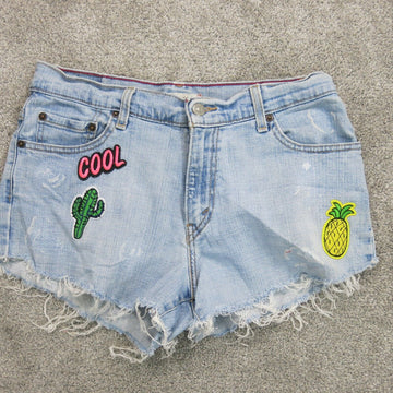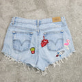 Levi's Womens Cut Off Shorts Denim Graphic Mid Rise Stretch Pockets Blue Size 10