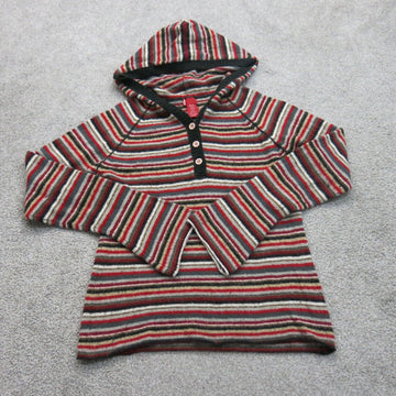 Levis Womens Henley Hoodie Sweater Striped Long Sleeve Red Black Size X Large