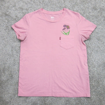 Levis Womens Pullover T Shirt Short Sleeves Front Pocket Crew Neck Pink SZ Small