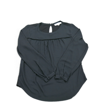 Loft Women Blouse Top Crew Neck Long Sleeve Back Keyhole Black Size Small