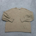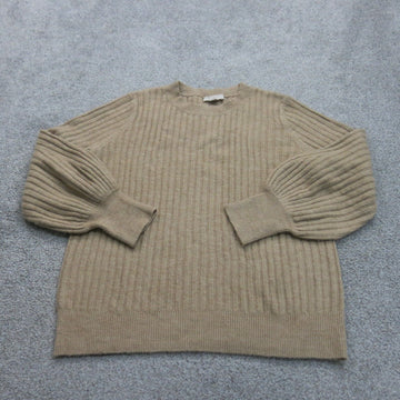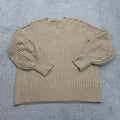 Loft Women Knitted Pullover Sweater Crew Neck Long Puff Sleeve Tan Size Large