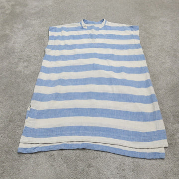 Loft Women Tank Tee Top Sleeveless V Neck Side Slit Striped Blue White Size M