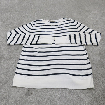 Loft Womens Striped Sweatshirt Long Sleeve Crew Neck White Black Size Small