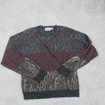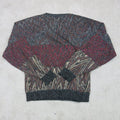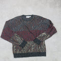 London Fog Womens Pullover Sweater Crew Neck Ribbed Cuff & Hem Waves Red Tan 3X