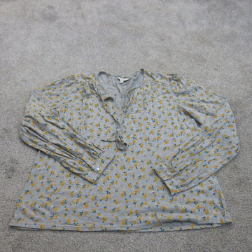 Lucky Brand Blouse Top Womens Large Gray Floral Long Sleeve V Neck Lightweight