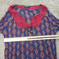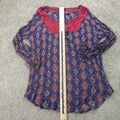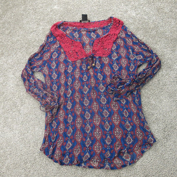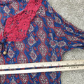 Lucky Brand Blouse Womens Medium Blue Dolman Sleeve Lace Detail Aztec Floral Top