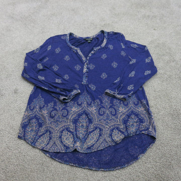 Lucky Brand Blouse Womens Small Purple Henley Blouse Top 3/4 Sleeve Round Hem