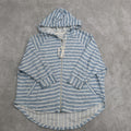 Lucky Brand Hoodie Womens Medium Blue White Striped 3/4 Sleeve Full Zip Sweater