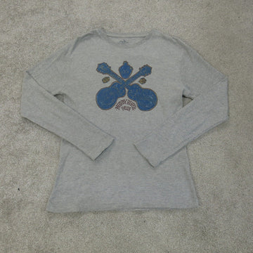 Lucky Brand Shirt Mens Medium Gray Crew Neck Graphic Tee Long Sleeve Lightweight