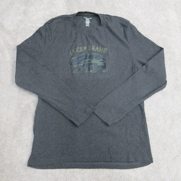 Lucky Brand Shirt Mens Small Gray Long Sleeve Sleepwear Crew Neck Graphics Tee