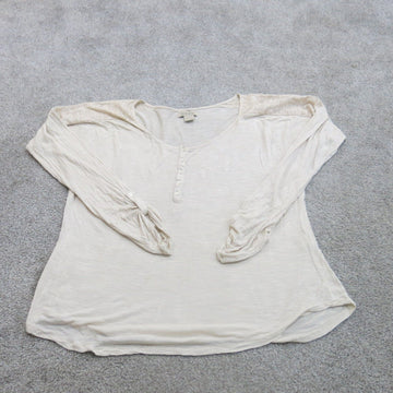 Lucky Brand Shirt Womens Large Crew Hely Blouse Top Long Sleeve Lightweight