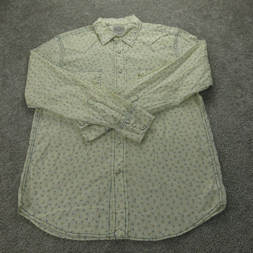 Lucky Brand Shirt Womens Medium Yellow 100% Cotton Floral Western Wear Button Up