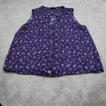 Lucky Brand Women Paisley Button Up Tank Blouse Front Knot Hem Purple Size XL