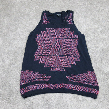 Lucky Brand Women Pullover Knitted Top Sleeveless Crew Neck Black Red Size Small