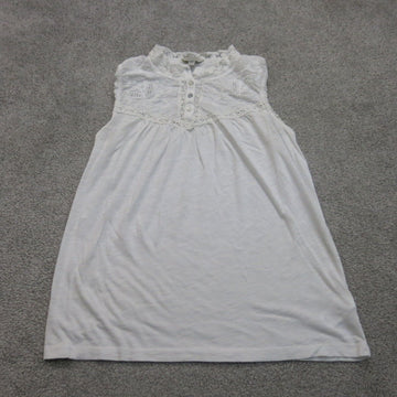 Lucky Brand Womens Blouse Top Lace Detail Front Button Sleeveless White SZ Small