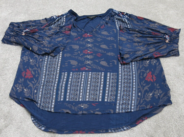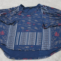 Lucky Brand Womens Casual Hi Low Hem Blouse Top Flare Long Sleeves Blue Size L