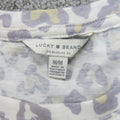Lucky Brand Womens Crew Neck T Shirt Short Sleeves Leopard Print Gray White SZ M