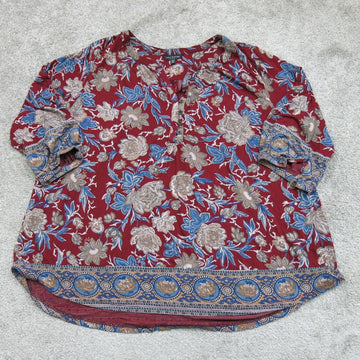 Lucky Brand Womens Pullover Blouse Top 3/4 Sleeve Front Button Multicolor SZ 2XG