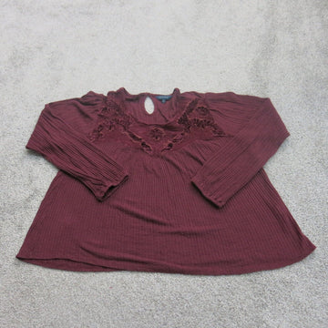 Lucky Brand Womens Pullover Blouse Top Long Sleeves Crew Neck Maroon Size M