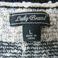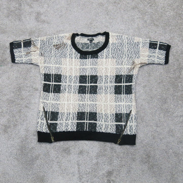 Lucky Brand Womens Pullover Sweater Short Sleeve Side Zip Black Tan Size Large