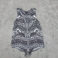 Lucky Brand Womens Romper Sleeveless Front Button Paisley Gray White Size Medium