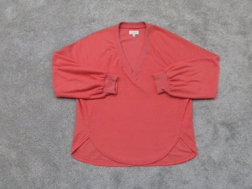 Lucky Brand Womens V Neck Pullover Sweatshirt Long Sleeves Orange Size X Small