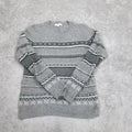 Madewell Womens Pullover Sweater Geometric Round Neck Long Sleeve Gray Black S